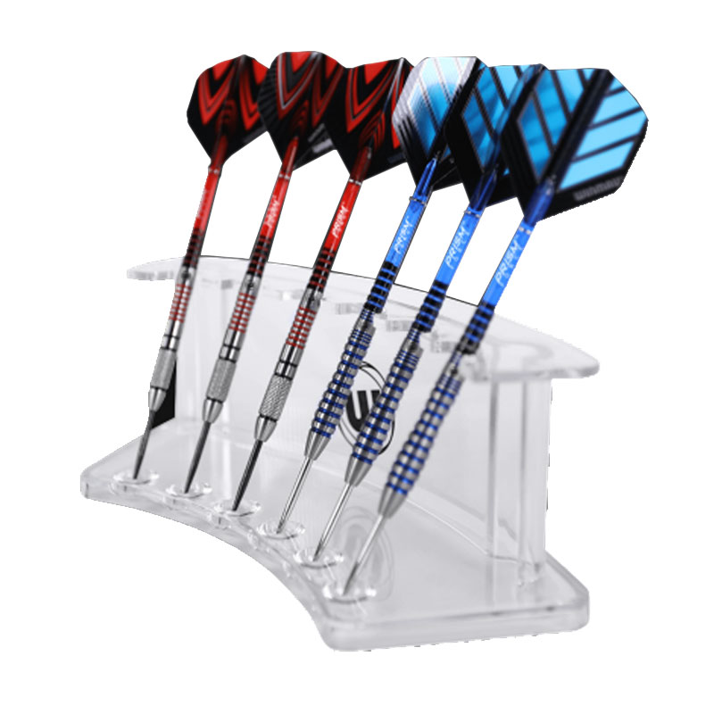 ダーツの通販サイトを見るとこんな感じのスタンドを売っているんですが、これだと場所を取るのと、1本1本並べていかないといけないのがちょっと面倒くさそうだなと思って私は試したことがありません。