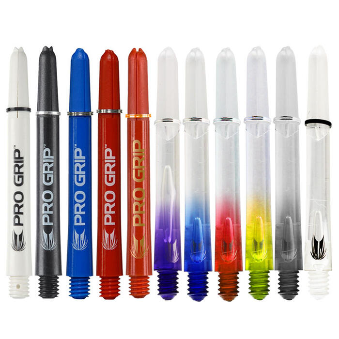 そんなわけで、シャフトは時々折れる消耗品だと考え、予備は常に持っておいたほうがいいと思います。ただ、長さも色も形式も好みがあるので、とりあえずの予備用としては、安くて標準的なターゲットのプログリップ(360円)のミディアムを買っておけば安心かと思います。